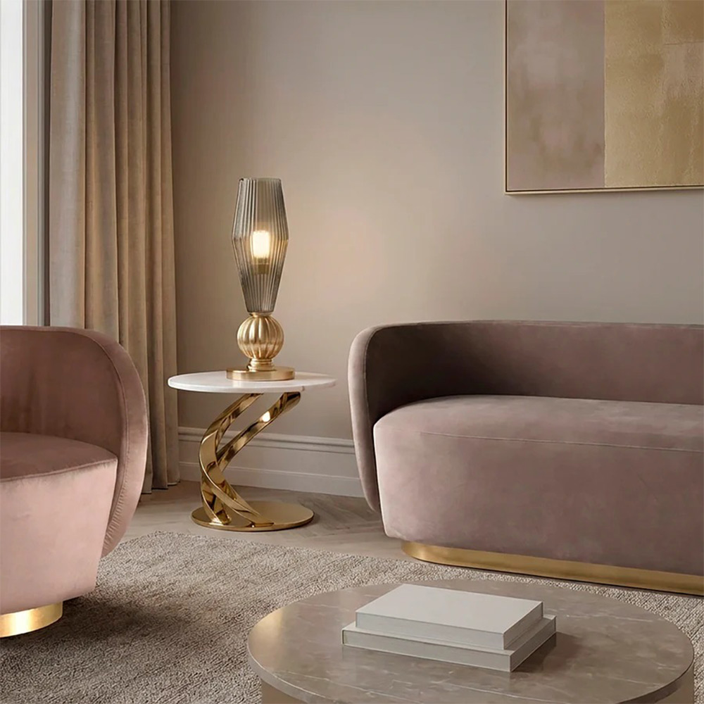 Make a statement in your home with this Angelica Table Lamp. A series of murano glass and porcelain elements of different shapes stacked one on the other forms the eye-catching stem of this exquisite table lamp. Each element boasts a different color and texture to add a refined sense of movement to this piece. The shade in mouth-blown Murano glass completes this exquisite work of art.