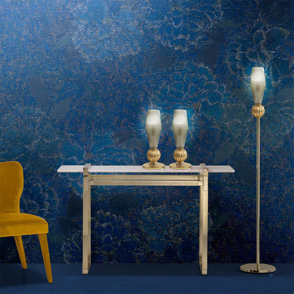 Brass 24 ct gold plated, murano glass, handmade porcelain
