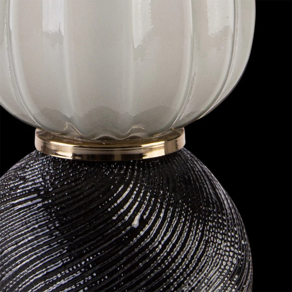 This lamp is a perfect blend of porcelain and murano glass elements, creating a unique and elegant design. The transparent elements add a touch of sophistication to the overall look and feel of the lamp. The texturized elements feature different and eclectic patterns, adding an eye-catching element to this already beautiful piece. Illuminate your space with the Ares table lamp and enjoy the beautiful ambiance it creates.