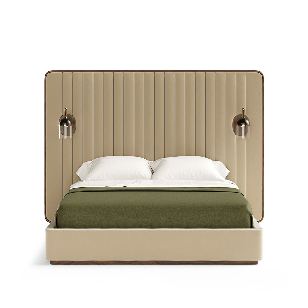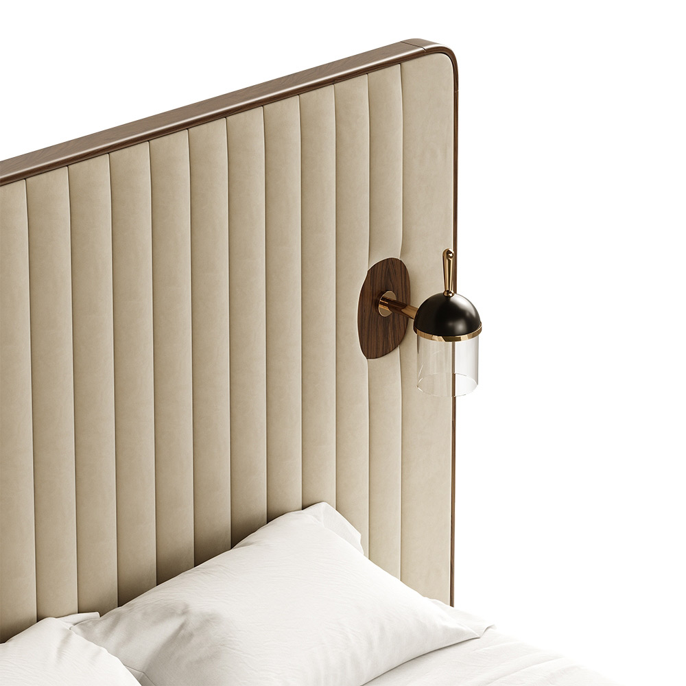 Como promises to take anyone back to the 50s with its sophisticated yet edgy look. The design brings to the bedroom a gentle balance between modern and retro style, playing with simplicity and boldness in a graceful move. The two light sources perfectly aligned in the headboard gives it the golden year’s glamour, turning this bed into a showpiece.