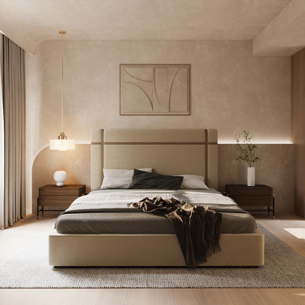 With a design style rooted in the twentieth century, the Gaye bed opens the door to the mid-century era, transporting the glamour of that period to modern times. By blending the clean lines of the body with a retro look through the leather details on the headboard, Gaye leaves a nostalgic feeling to the admirers of this period of history.