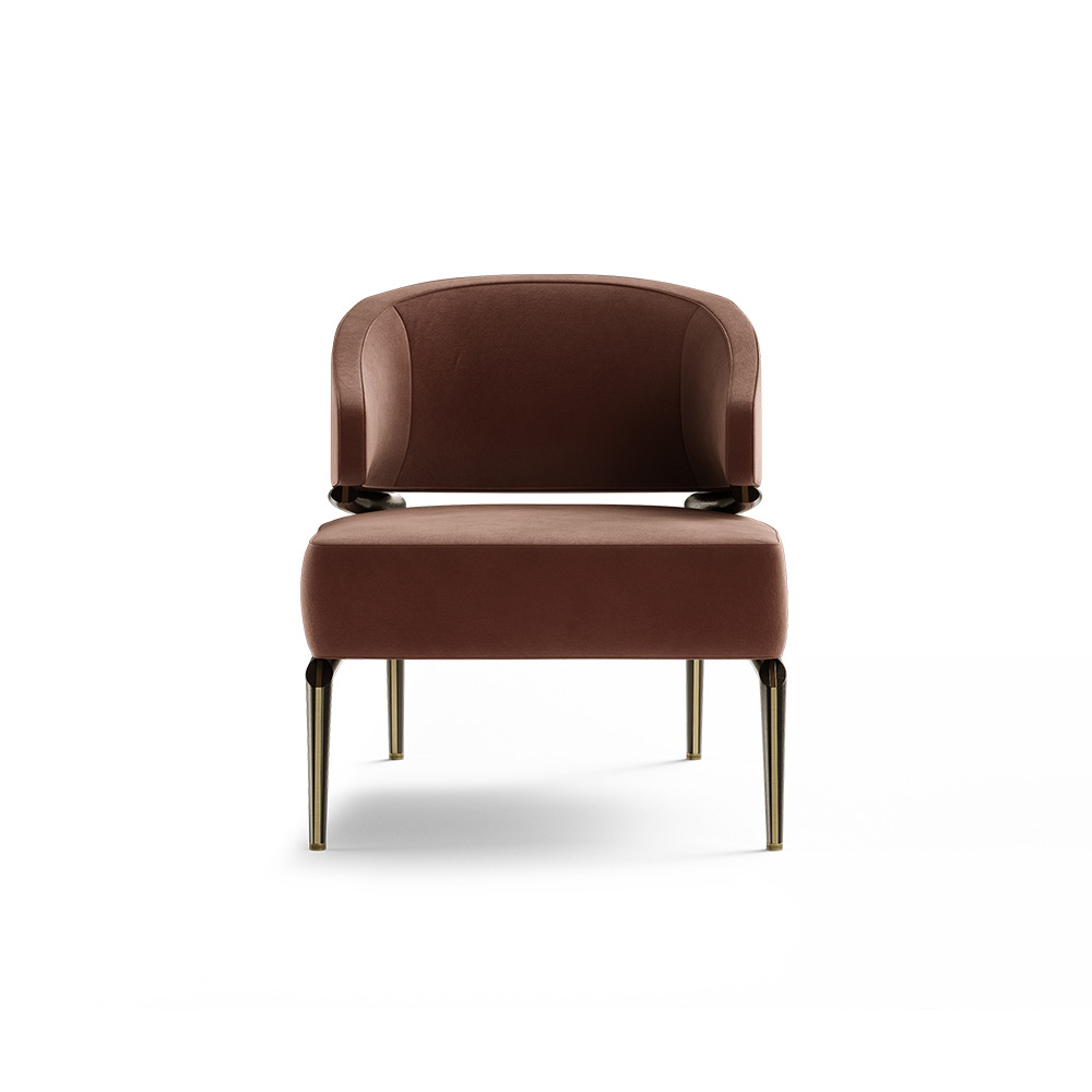 The Haines armchair features a solid seat, which is elegantly supported by refined parallel legs creating the point of connection with an enveloping backrest, in a rectangular shape, and sloped armrests.