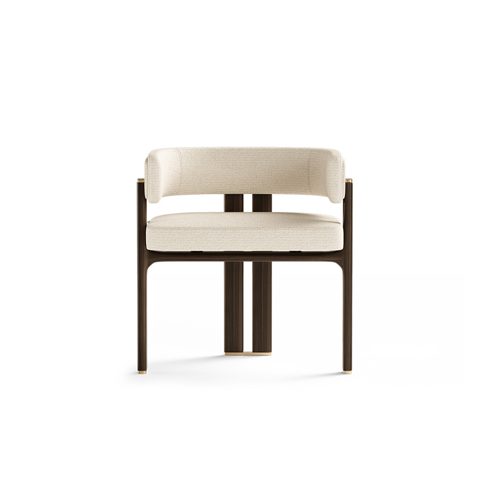 The Karl Dining Chair has a robust wood structure and a large deep seat that gives this chair the necessary comfort. The particularity of this chair is the low rounded backrest and the brass details that give elegance to the design. This is a perfect chair to have in a dining room or a restaurant.