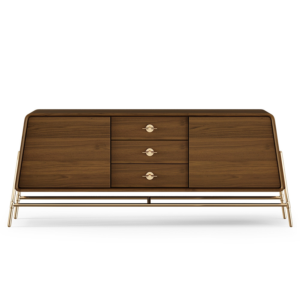 Matte Walnut Wood and Gold Plated Brass