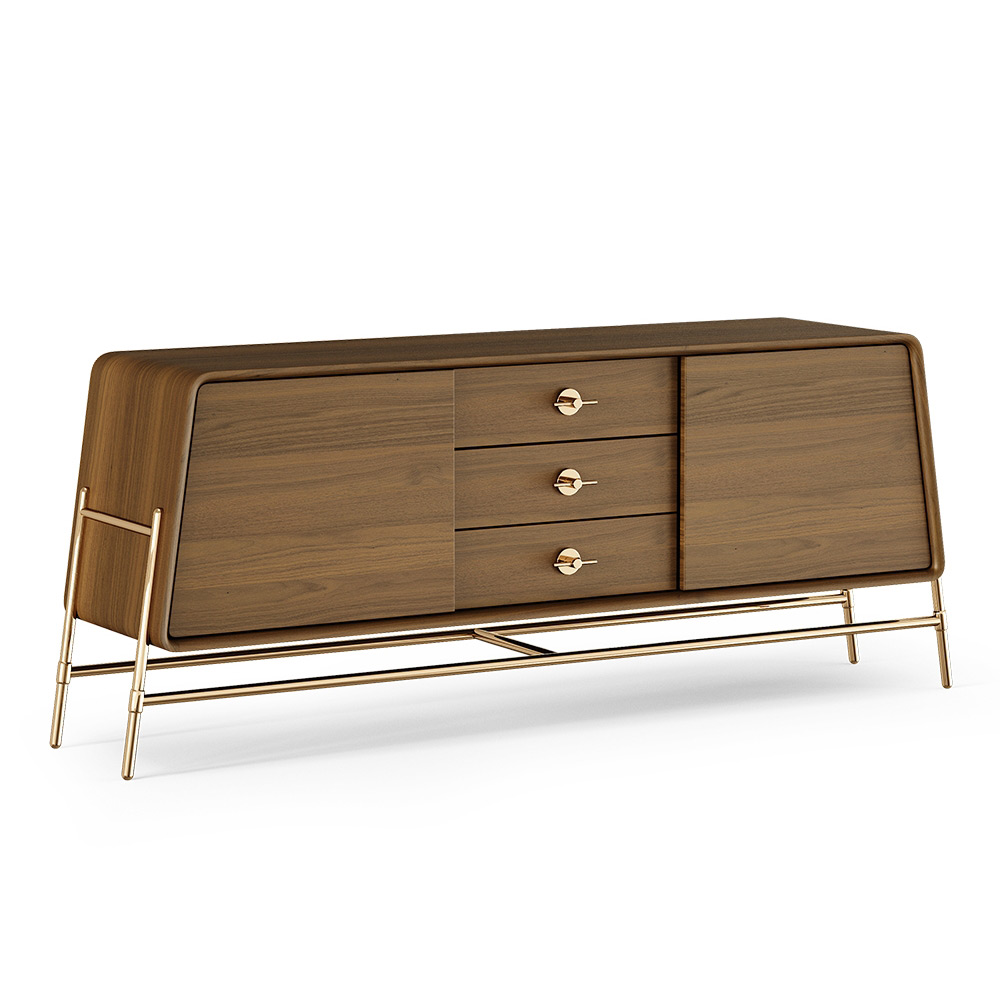 Drawing inspiration from the golden years aesthetic, Holly’s retro look brings to the modern interiors a bold elegance emphasized by the exquisite brass structure holding the robust body. Its alluring design will be the spotlight of any space.