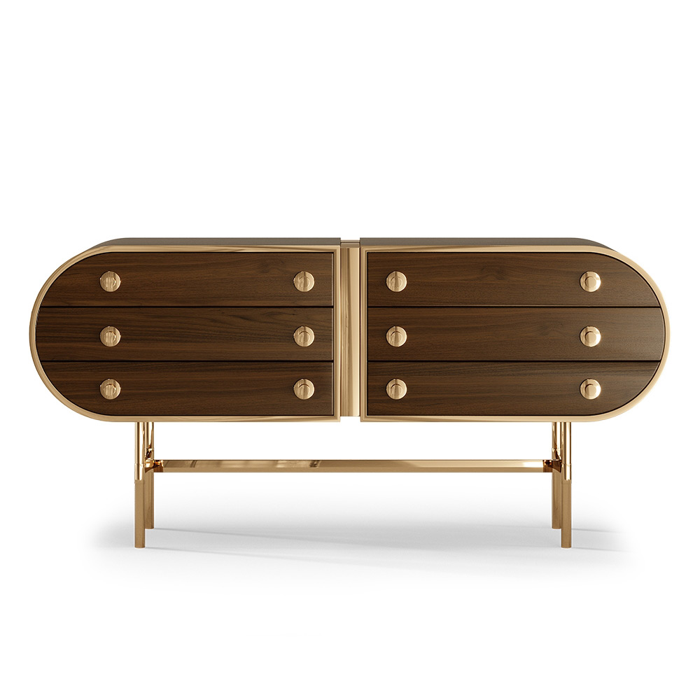 The retro-chic design from the Moryson Sideboard was the pure inspiration that brings the 60’s design legacy reborn in this new concept. With six drawers finely accentuated with stylish handlers that seem to give us the illusion of a safe box, this sideboard is the best choice for all mid-century admirers.