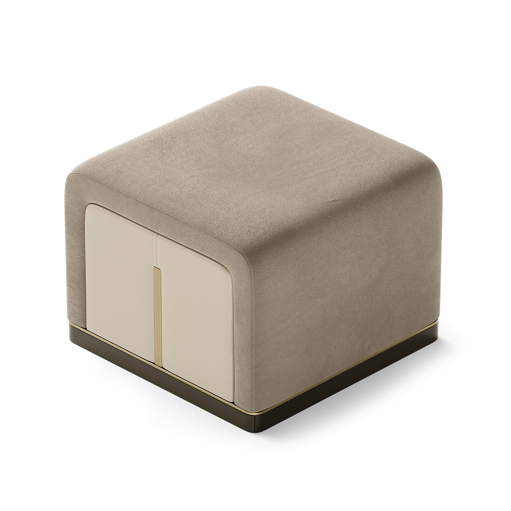 The peculiar design of Hadley makes it a lasting piece, ideal to incorporating in any modern interior. The round edges on the top guides the eye to the interior layer, made of a different material to create a graceful contrast. The brass outlines the design elegantly.