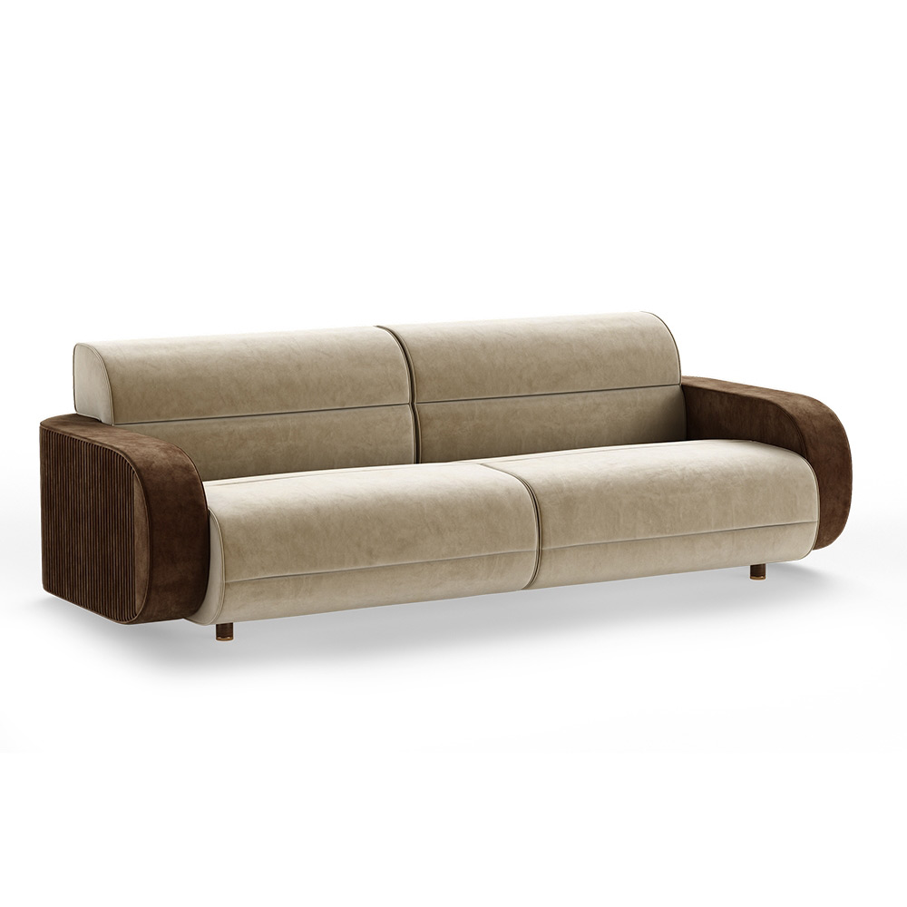 Rollins is the perfect sofa to fulfill your sophisticated mid- century project. The pattern design on the arms and back, combined with the brass base, made this sofa an elegant choice to be the spotlight in any living room.