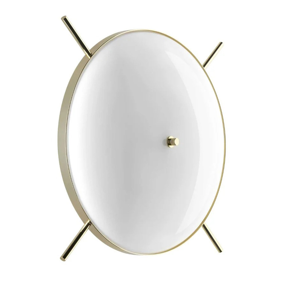This stunning Venusia celling light reinterprets Art Deco glamour in a modern and dramatic way. Venusia takes this name from a series of cartoons very popular in the 80s, as with its design is inspired by a UFO but at the same time recalls in the features geometries that bring us back to the Deco design Districts of Miami developed between 1920/30 Its structure in brass serves as mounting for the mouth-blown Murano glass shade and is embellished by four brass spikes that give the silhouette a dynamic flair.
